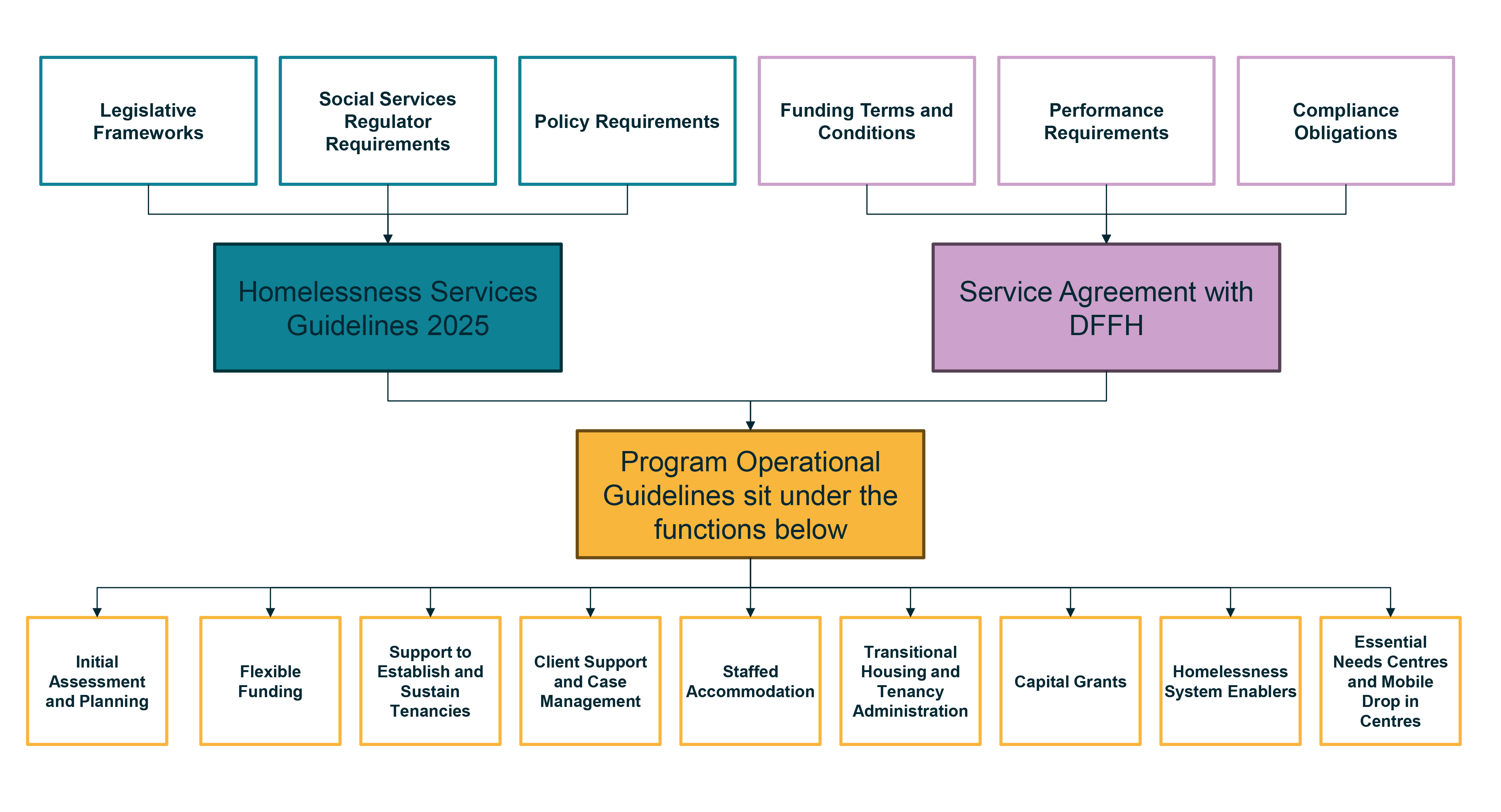 Use the 2025 guidelines with the service agreement that every SHS has with the Department of Families, Fairness and Housing (the department). See Figure 1 below.
